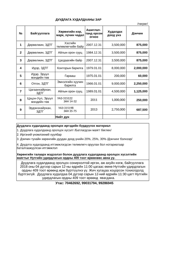 ДУУДЛАГА ХУДАЛДААНЫ ЗАР